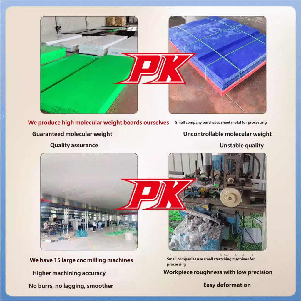 Our UHMWPE chain guide wear strips are processed using self-produced high-molecular-weight plates, which have a significant advantage in molecular weight—up to over 3 million, far exceeding similar products on the market. This makes their wear resistance and impact resistance even more excellent. Even in high-load and high-friction working environments, they can still maintain stable performance, and their service life is extended by more than 30% compared with ordinary products. We use precision machine tool processing equipment to ensure product precision and surface roughness. The contact with the chain is closer, and the guidance is more accurate, which can effectively reduce the deviation and vibration of the chain and improve the stability of equipment operation.