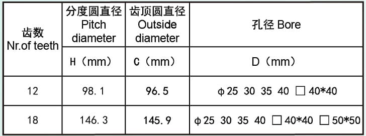 Chain wheel parameters