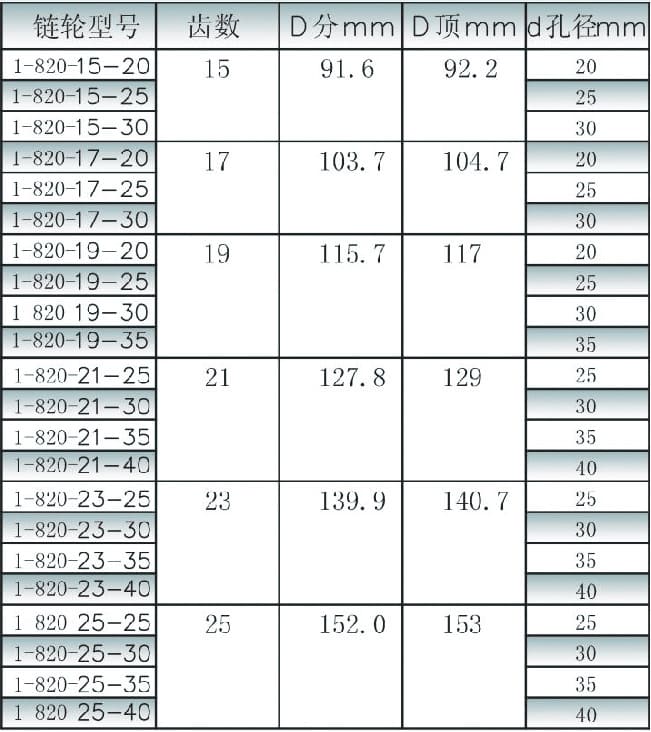 Chain wheel parameters