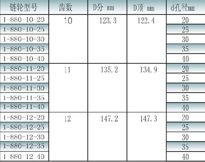 880 series sprocket