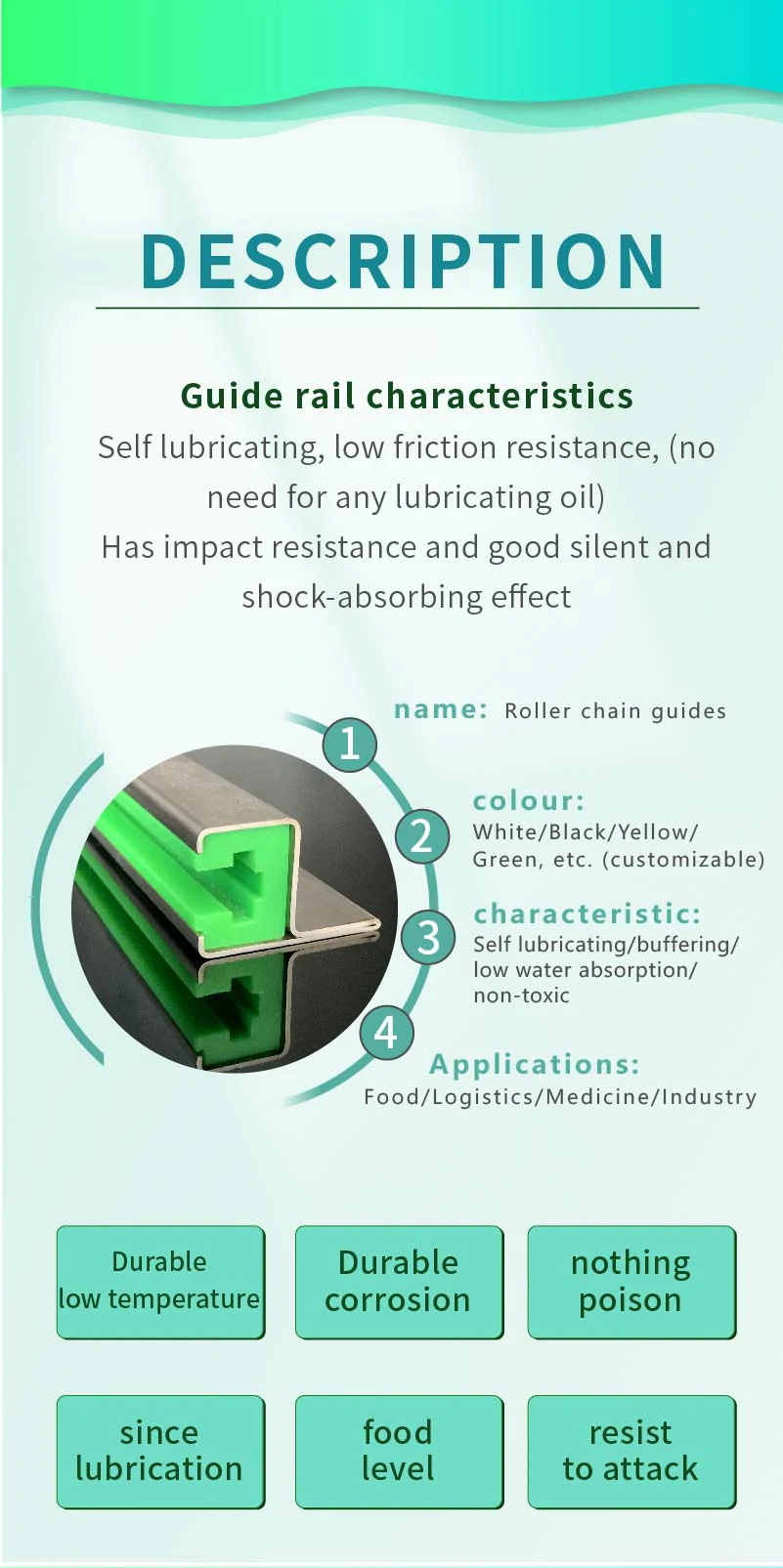 Engineered for demanding environments, the CKG-H type guide rail ensures smooth chain movement, reduces friction, and improves the overall efficiency of conveyor operations.