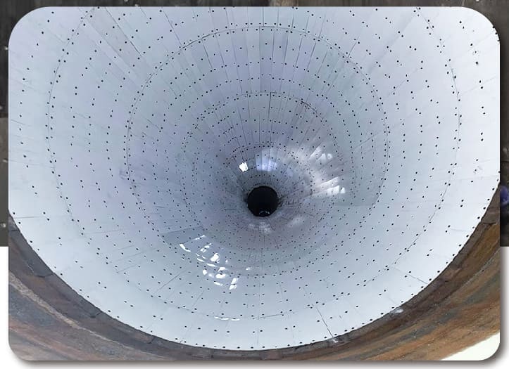 Drill holes on the coal bunker wall, and then fix the silo liner on the bunker wall with bolts.