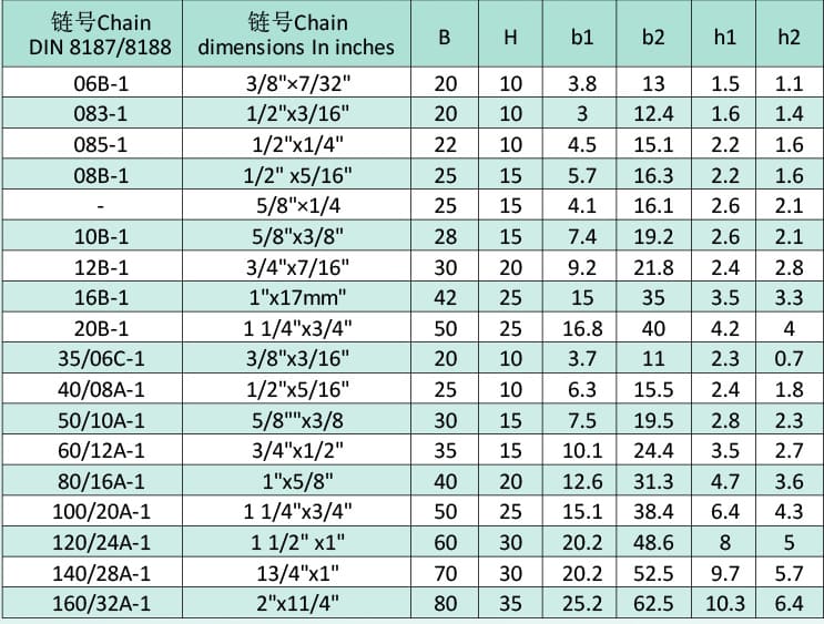 TS-type chain guide rail parameter table