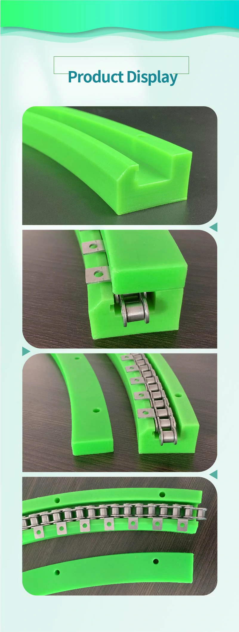 UHMWPE material provides outstanding abrasion resistance, significantly reducing wear and extending the service life of both the guide rail and conveyor chains.
