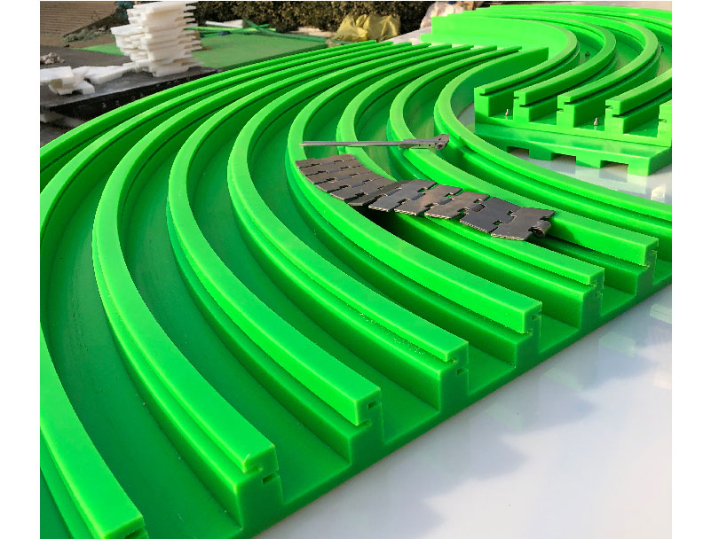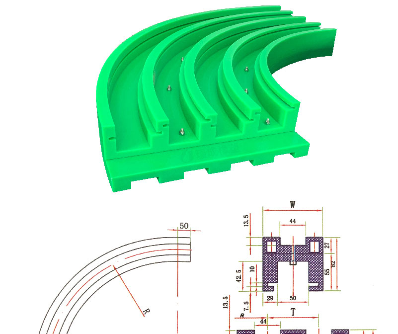As the tracks have outstanding sliding properties, flat top chains are less susceptible to wear. The tracks are made from high-quality, durable materials for long service life. magnetic corner tracks are available in all standard sizes for all common flat top chains, radii and angles. The range also includes standard TAB and bevel curves. We can also manufacture magnetic corner tracks in accordance with individual customer drawings.