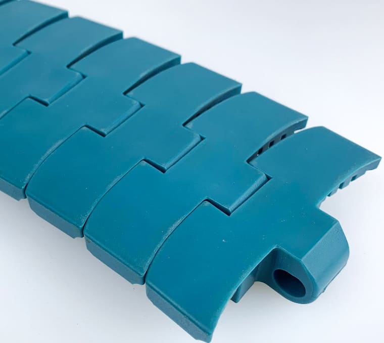 | Mainly suitable for application in various foods, beverages, PET bottles, aluminum cans, and various types of transportation. The material is POM, the color is dark green, and the operating temperature is -30 ° C~+90 ° C. The material of the pin shaft is cold-rolled austenitic stainless steel. Maximum speed: 50 meters/minute lubricant 30 meters/minute desiccant. The working load (25 ° C) is 1710N, and the maximum conveying length is 12 meters